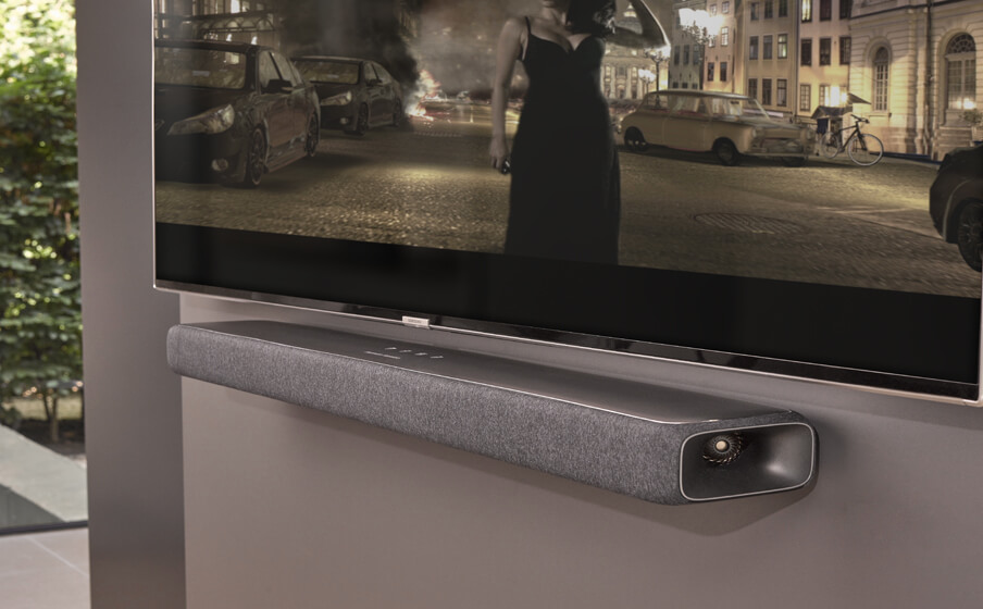 Получите полный эффект объемного звучания без дополнительных громкоговорителей и проводов. Harman Kardon Enchant обеспечивает захватывающие звуковые эффекты телевизионных шоу, музыки, игр и фильмов, которые перемещаются по всей комнате.