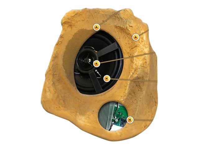 Эта ландшафтная акустика стилизованная под камень, устойчивая к атмосферным воздействиям и доступная в цвете гранит или песчаник, органично впишется в ваш наружный декор.