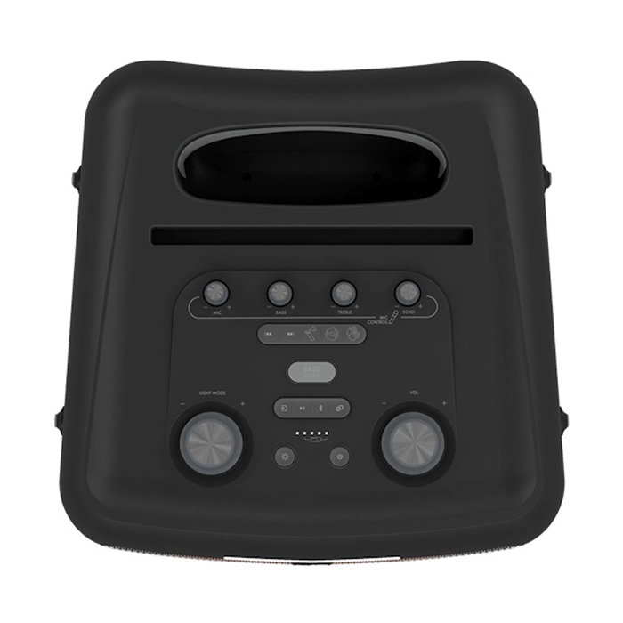 • Широкие возможности подключения. Помимо Bluetooth 5.2, предусмотрены входы AUX, а также отдельные входы для микрофона и инструмента (¼"), что позволяет использовать систему для караоке или выступлений.