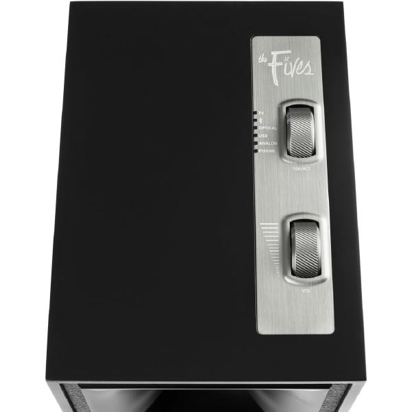 Комплект из двух The Fives предложили использовать как универсальную аудиосистему с функционалом, заточенным для подключения к телевизору. Так, на борту The Fives имеется HDMI ARC, модуль Bluetooth, оптический вход, стандартный вход 3,5 мм и разъем для подключения проигрывателя винила (в колонках есть фонокорректор). Таким образом, подключить к The Fives можно практически любой источник, кроме как по Wi-Fi.