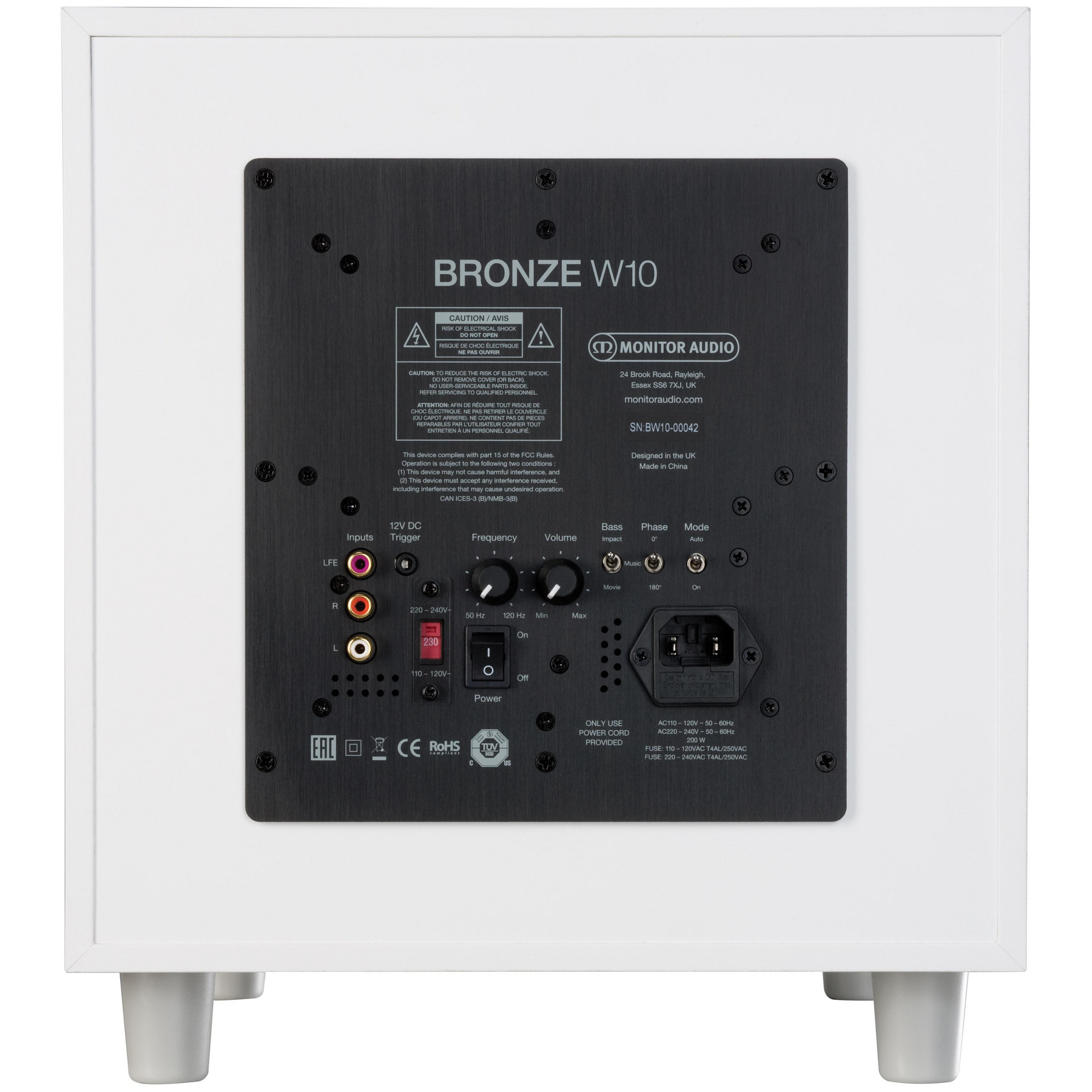 Активный сабвуфер Monitor Audio Bronze W10 представляет собой современную и мощную модель, предназначенную для озвучивания комнат средних размеров. Сабвуфер выполнен в сравнительно компактном корпусе из MDF толщиной 18 мм и имеет качественную внешнюю отделку. По своим параметрам и дизайну Monitor Audio Bronze W10 полностью согласован с акустикой серии Bronze 6G, однако может с успехом использоваться и в домашних кинотеатрах, оснащенных колонками других марок.