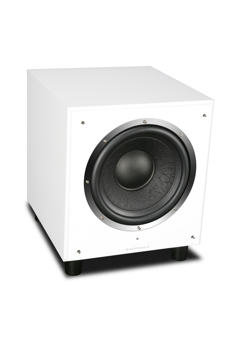 Изысканные линии Wharfedale SW-15 в черном или белом цветовом исполнении отлично будут сочетаться с напольными громкоговорителями бренда.