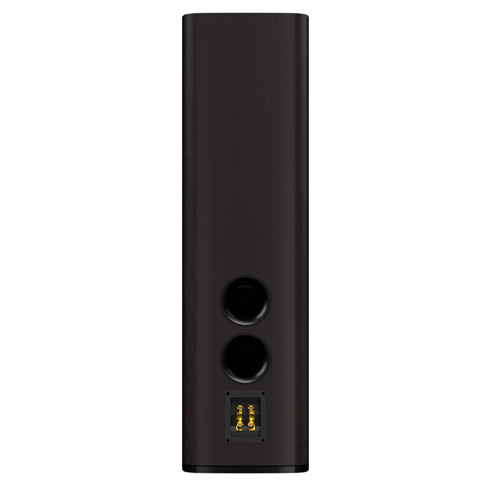 Акустические системы имеют конфигурацию 2,5-полосы, что позволило получить насыщенные и глубокие низкие частоты, и в то же время хорошую отдачу на мид-басе. В колонках установлено два НЧ-динамика диаметром 8 дюймов с диффузорами PolyPlas, значение частоты кроссовера между которыми выбрано 600 Гц. Басовики нагружены на фазоинвертор, выходное отверстие которого выведено на заднюю панель. В целом такая конструкция, в сочетании со значительным внутренним объемом колонки, обеспечила воспроизведение басов со значения 36 Гц, что является очень хорошим показателем.