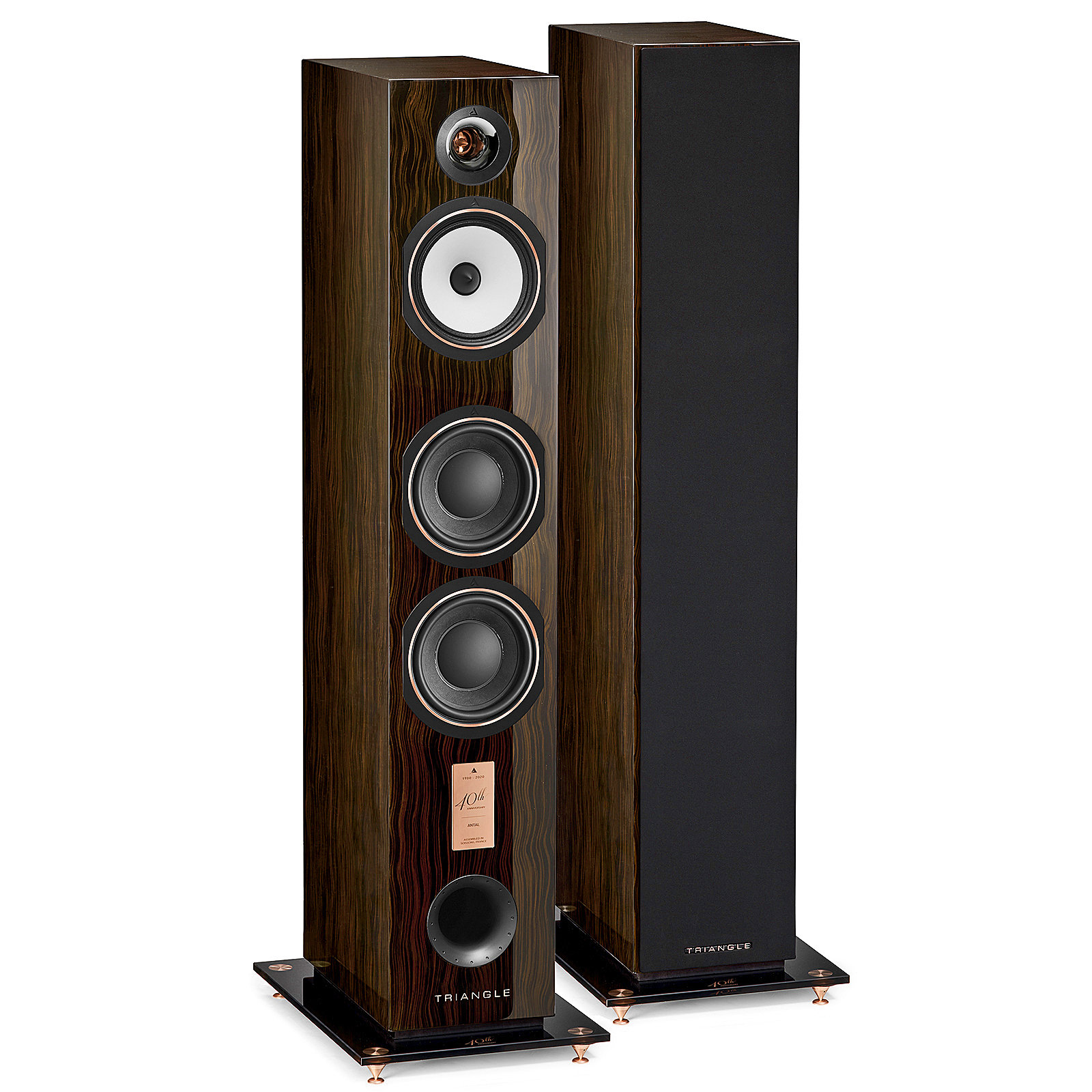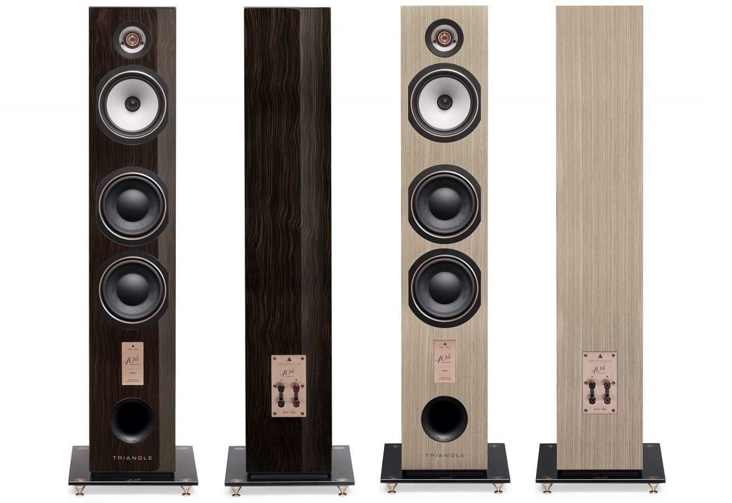 Трехполосная напольная акустика Triangle Antal 40th Anniversary, выпущенная к 40-летнему юбилею знаменитой французской компании, имеет безупречную конструкцию и обладает превосходным звучанием. Колонки оснащены новым твитером с магниевым куполом, анодированным розовым золотом, что является одной из отличительных особенностей данной модели. Также в Triangle Antal 40th Anniversary используется фирменный СЧ-динамик с диффузором из натуральной целлюлозы и два мощных басовика, которые воспроизводят глубокие и сфокусированные низкие частоты. Юбилейная акустика Triangle Antal 40th Anniversary производится на заводе компании во Франции. НОВЫЙ ВЫСОКОЧАСТОТНЫЙ ДИНАМИК В колонках Triangle Antal 40th Anniversary используется новый твитер, оснащенный куполом из магниевого сплава, дополнительно покрытым розовым золотом. Такая структура обеспечила высокую жесткость купола и его устойчивость к резонансам, что гарантировало воздушное и неокрашенное звучание в широком частотном диапазоне. Твитер нагружен на фирменный рупор с компрессионной камерой, что позволило дополнительно повысить эффективность его работы, а также выровнять диаграмму направленности колонки. УЛУЧШЕННЫЙ СРЕДНЕЧАСТОТНЫЙ ДИНАМИК В колонках Triangle Antal 40th Anniversary используется фирменный среднечастотный динамик с диффузором из натуральной целлюлозы, который стал уже своеобразной визитной карточкой высококлассной акустики компании. Однако в данной модели он был дополнительно улучшен за счет изменения профиля диафрагмы, что позволило получить еще более артикулированное и точное воспроизведение вокала и музыкальных инструментов. Кроме того, для нового СЧ-динамика удалось упростить схему разделительного фильтра, что также положительно сказалось на качестве звучания акустики. НЧ-ДИНАМИКИ НОВОГО ПОКОЛЕНИЯ Акустика Triangle Antal 40th Anniversary оснащена низкочастотными динамиками нового поколения с диффузорами из комбинированного материала, состоящего из древесной массы в сочетании с льняным волокном и карбоном. Это позволило получить очень легкие и в то же время жесткие диффузоры, которые не деформируются даже при самом быстром перемещении с большой амплитудой. Благодаря таким НЧ-динамикам Triangle Antal 40th Anniversary воспроизводят потрясающе глубокие и точные басы для колонок таких размеров. СПЕЦИАЛЬНАЯ КОНСТРУКЦИЯ КОРПУСА Корпус колонок Triangle Antal 40th Anniversary выполнен из MDF-панелей значительной толщины и имеет внутренние перегородки, которые не только повышают его жесткость, но и служат для защиты динамиков от вибраций, а также гашения резонансов. Даже при самой высокой громкости прослушивания звучание колонок Triangle Antal 40th Anniversary остается полностью нейтральным и неокрашенным. Колонки Triangle Antal 40th Anniversary имеют внешнюю отделку шпоном натурального дерева и лаком, которая производится вручную. ВНИМАНИЕ КО ВСЕМ ЭЛЕМЕНТАМ КОНСТРУКЦИИ В колонках Triangle Antal 40th Anniversary используются разделительные фильтры, выполненные из отборных компонентов аудиофильского класса, а блок винтовых разъемов, предполагающий возможность подключения по схемам Bi-Wiring / Bi-Amping, смонтирован на алюминиевой панели, также покрытой розовым золотом. На эту панель нанесен специальный логотип, подчеркивающий эксклюзивный статус Triangle Antal 40th Anniversary. СДЕЛАНО ВО ФРАНЦИИ Колонки Triangle Antal 40th Anniversary выпускаются на заводе компании во Франции, что гарантирует высокое качество их звучани