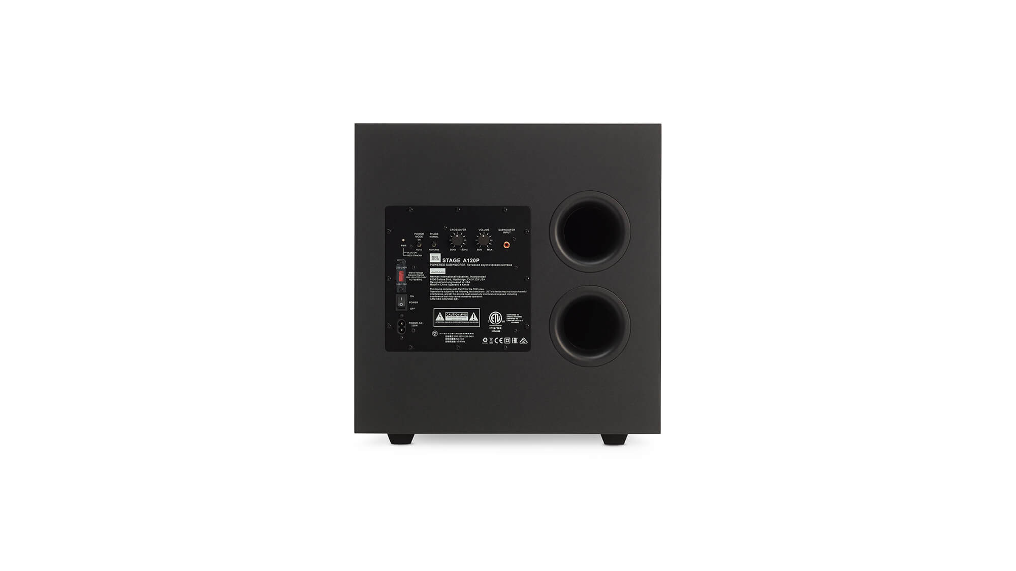 Сабвуфер JBL Stage A120P входит в бюджетную линейку акустических систем Stage, представленную компанией JBL в категории Home Audio. Модель занимает более высокую позицию по отношению к своему младшему собрату A100P, имеет более крупный корпус и оснащается драйвером большего диаметра. Сабвуфер станет отличным вариантом для усиления басовой секции системы домашнего кинотеатра, предназначенной для работы в средних и больших по площади помещениях. Предпочтительным вариантом для работы в тандеме с JBL Stage A120P станут АС из Stage-серии. Тем не менее, данный саб также хорошо сочетается со спикерами сторонних производителей.