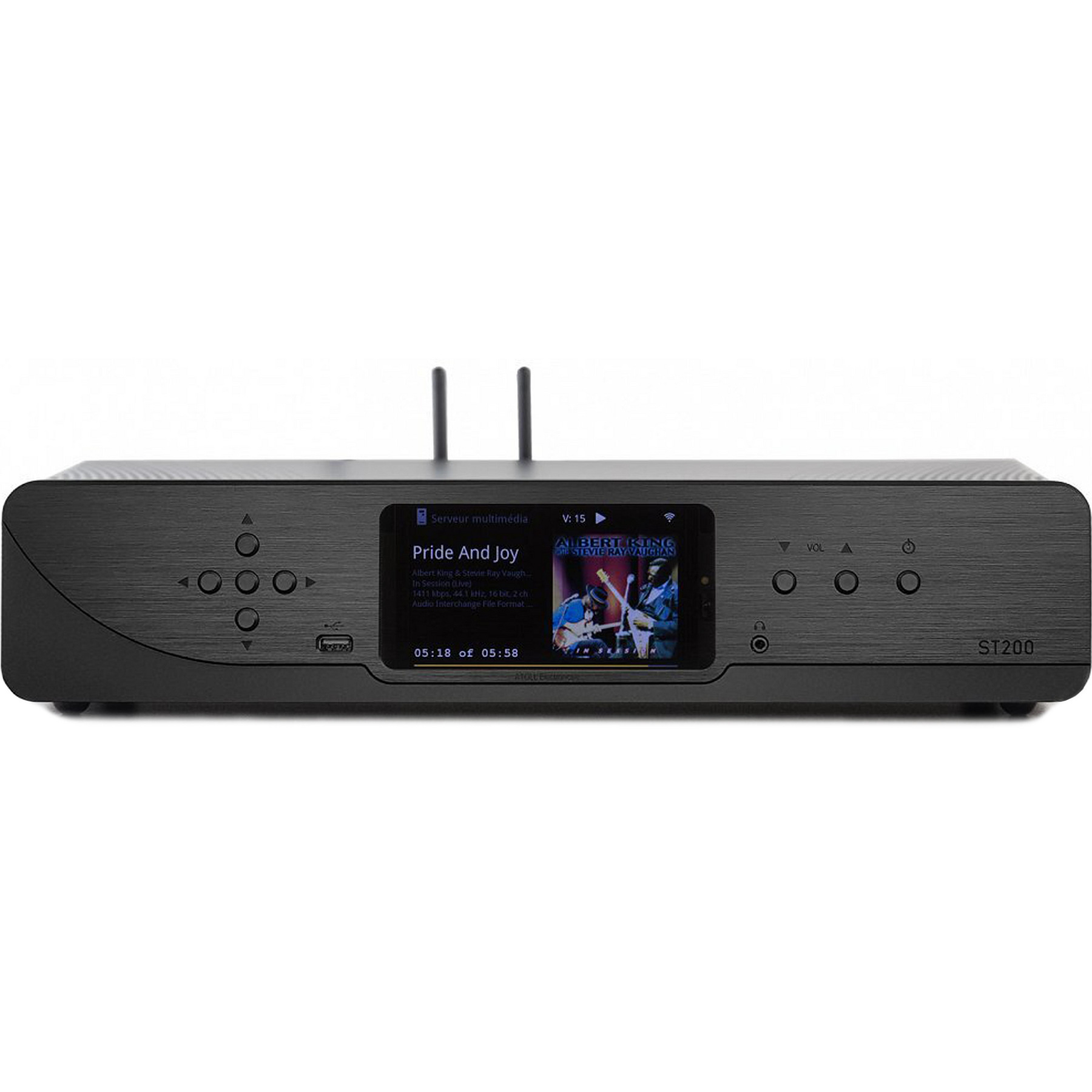 Сетевой проигрыватель Atoll ST200 Signature продолжает развитие предыдущей модели ST200. Аппарат получил лаконичный дизайн и более крупный пятидюймовый TFT-дисплей, который отображает обложки альбомов, названия песен, тэги, разрешение файла и прочую информацию.