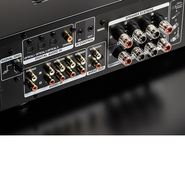 В усилителе приняты особые меры для разделения цифровых и аналоговых схем. Для их питания используются раздельные вторичные обмотки сетевого трансформатора, а соответствующие платы максимально удалены друг от друга и снабжены экранами. Микропроцессор, управляющий усилителем, имеет специальный стоп-режим для исключения любых наводок на чувствительные аудиосхемы. Кроме того, в схемотехнике аппарата применено разделение сигналов по уровням (фирменная технология SLDC) для устранения взаимовлияния между ними. К усилителю можно подключить две пары акустических систем (или одну пару по схеме Bi-wiring), с помощью заказных винтовых клемм.