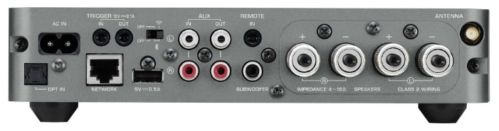 Выполненный в корпусе из металла усилитель со стильным дизайном и функциональной передней панелью, оборудованной кнопками управления, индикаторами и большим аналоговым регулятором, гарантирует гармоничное размещение возле любой аппаратуры в горизонтальном или вертикальном положении. На тыльной стороне разместились входы AUX, USB, оптический разъем и интерфейс Ethernet. Кроме выходов на АС в устройстве предусмотрены выход на сабвуфер, а также специальные триггерные разъемы и Remote In для дополнительных возможностей управления. К другим особенностям модели Yamaha WXA-50 относятся поддержка технологий DLNA 1.5, AirPlay, встроенных модулей беспроводной связи Wi-Fi и Bluetooth. С помощью модулей и фирменной технологии MusicCast со специальным приложением для смартфона усилитель можно с легкостью подключить к колонкам Yamaha или другим компонентам аудиосистемы, взаимодействуя только с мобильным девайсом.
