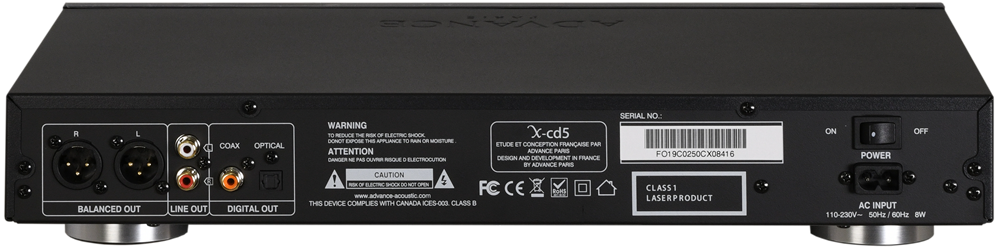 Тот же серьезный подход применен и в начинке – мозг проигрывателя – ЦАП Wolfson WM8761, который обеспечивает разрешение до 24bit/192kHz, т.е. позволяет воспроизводить контент более высокого, чем CD разрешения (по USB). Помимо серьезного ЦАПа используется и «меломанская» элементная база – не рядовые конденсаторы и резисторы. В итоге - разделение каналов - 105dB, АЧХ – 20Гц-20 кГц с нелинейностью +/-1 дБ – этими цифрами можно гордиться! Именно благодаря таким высоким характеристикам, данный CD может занять место и в дорогой High-End системе – для коммутации на высоком уровне в Advance Acoustic X-CD5 используются балансные XLR выходы.