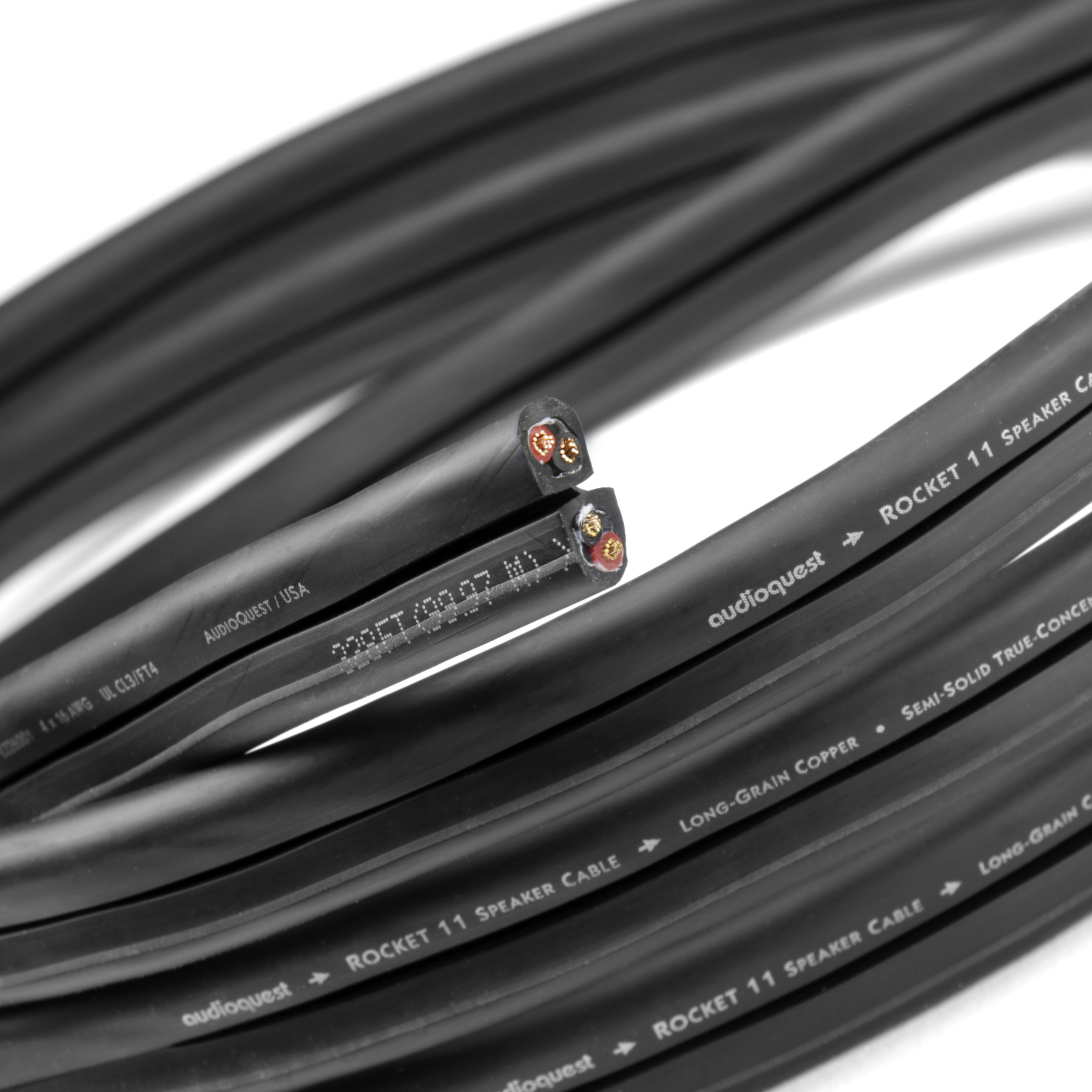 Проводник кабеля AudioQuest Rocket 22 имеет комбинированный полу-моножильный проводник, который изготовлен из высококачественной длинно-кристаллической меди LGC. Каждый проводник в кабеле имеет центральную моножилу, вокруг которой навиты мультижилы. Такая конфигурация позволяет получить стабильное взаимное размещение проводников, которое не будет меняться при изгибах кабеля. По своим параметрам такой соединитель близок к моножильному, но обладает более высокой надежностью и лучшей гибкостью. Кроме того, навивка многожильного проводника в кабеле AudioQuest Rocket 22, геометрия которого получила название True Concentric, производится во встречных направлениях для исключения взаимных помех.