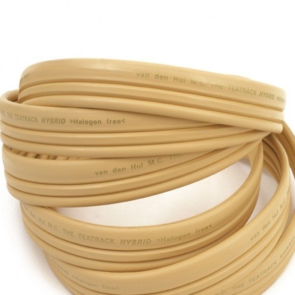 Кремовая оболочка кабеля изготовлена из разработанного компанией Van den Hul материала Hulliflex 3, обладающего великолепными механическими характеристиками и обеспечивающего оптимальную защиту кабеля от внешнего химического воздействия и воздействия окружающей среды. Кабель Teatrack Hybrid имеет следующие внешние размеры: ширина 25,5 мм, толщина 6,0 мм.