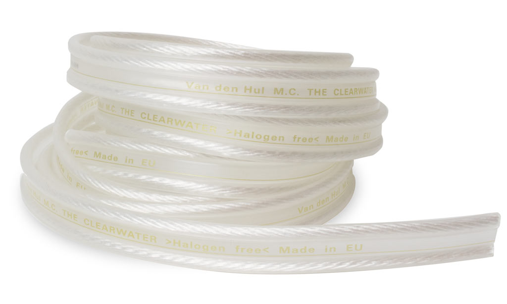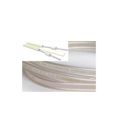 Конструкция кабеля Clearwater явилась результатом стремления конструкторов создать продукт с наивысшим соотношением между качеством и ценой. Было принято решение работать с двумя группами жил, крученных в проводники AWG 14. Причиной явилось то, что во многих случаях расстояние между усилителем и акустическими системами ограничено. Таким образом, двухпроводная конструкция состоит из 2 х 8 жил, изготовленных из материала MC OFC ( Matched Crystal Oxygen Free Copper - безкислородная медь с согласованной кристаллической структурой) с плотным покрытием из очень чистого серебра.