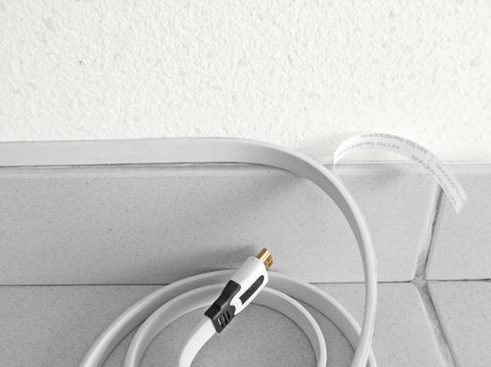 Этот кабель уникален тем, что имеет возможность приклеивания к любым плоским поверхностям, будь это плитка или окрашенная стена, обои или деревянная поверхность (клеевой слой уже присутствует на поверхности кабеля). Тем самым удачно впишется практически в любой интерьер, а благодаря возможности покраски кабеля в нужный цвет, он сможет остаться незамеченным или напротив – дополнит интерьеру изысканность.