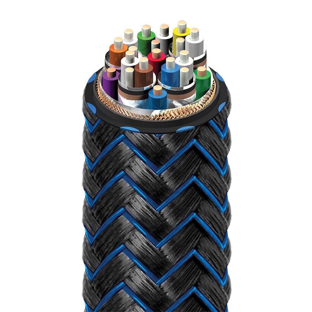 Традиционного «100% экранирования» недостаточно для защиты от все более распространенного воздействия Wi-Fi, сотового и спутникового излучения. В HDMI-кабелях AudioQuest все 19 проводников контролируются направлением, чтобы минимизировать радиочастотные помехи, которые ухудшают производительность, «направляя» или отводя их от наиболее уязвимых цепей. На Уровне 5 рассеивания шума графен с высокими потерями добавляется к углеродному слою, зажатому между слоями металла вокруг 4 пар FRL + eARC, а «глобальный» углеродный слой с высокими потерями размещается вокруг всех проводников.