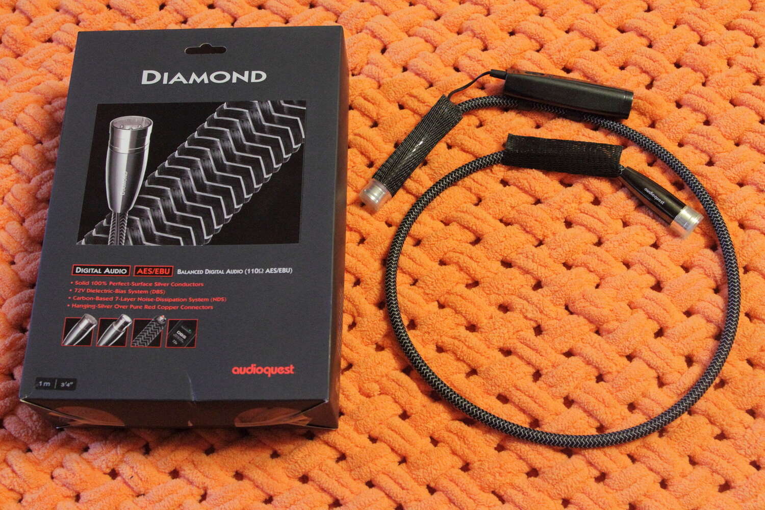AudioQuest Diamond, AES/EBU разработанный совместно компанией Audio Engineering Society и Европейским союзом вещания, установил двухканальный цифровой стандарт для соединения цифровых устройств в профессиональном мире. Но, AES / EBU также имеет свое применение и в бытовых условиях. Хотя AES / EBU может быть односторонним, сбалансированным или оптическим, здесь мы говорим о симметричном цифровом соединении.