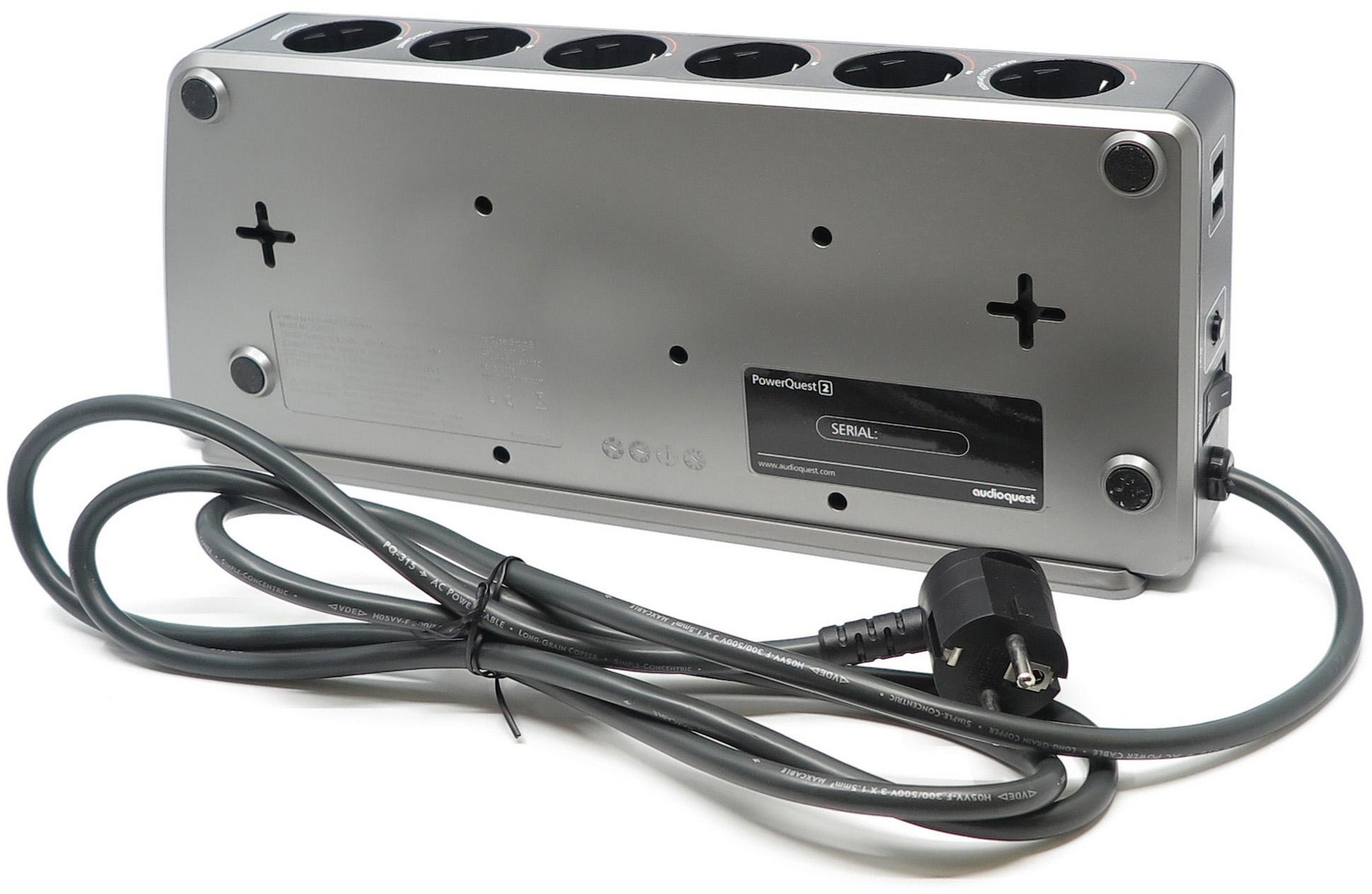В качестве дополнительных возможностей у AudioQuest PowerQuest 2 предусмотрены 2 USB-порта для подключения внешних устройств и фильтрация антенного/кабельного сигнала. Распределитель оснащен фирменным сетевым кабелем с концентрическим расположением проводников.