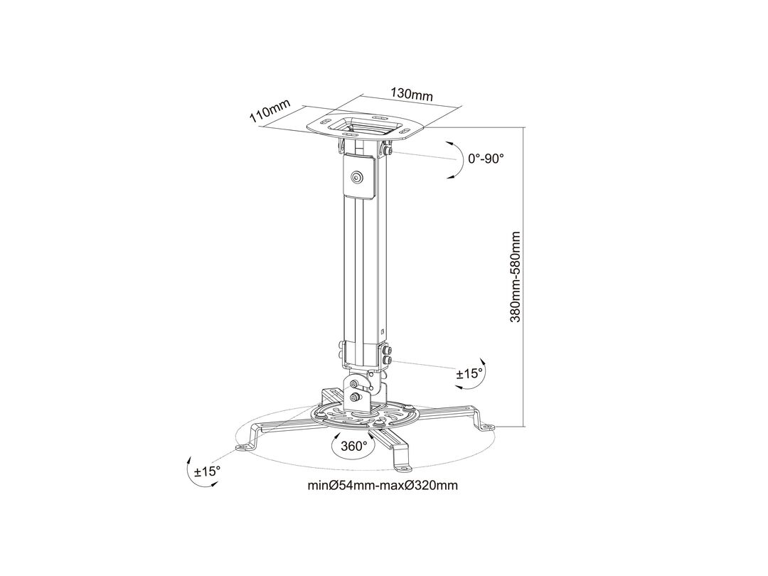 M Universal Projector Ceiling Mount I легко устанавливается, легко регулируется. Благодаря универсальному креплению он подходит для большинства проекторов, а диапазон креплений составляет от 54 мм до 320 мм.