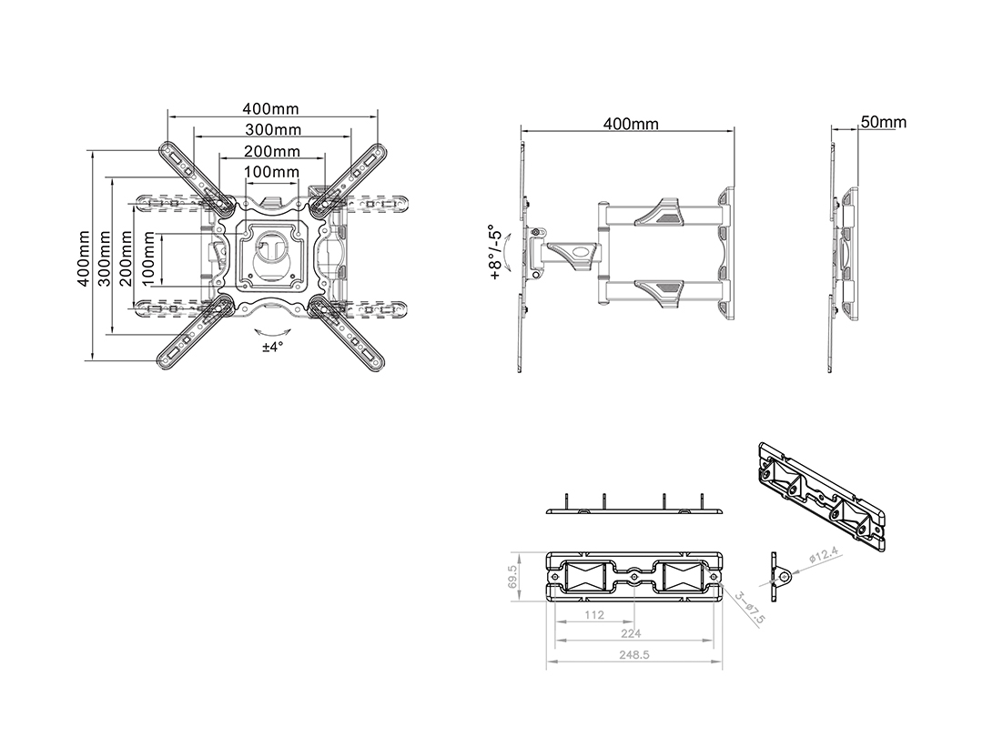 M VESA Flexarm Full Motion Single завершает эпоху громоздких и тяжелых кронштейнов, необходимых для сгибания, наклона и поворота. Если ваша цель — найти незаметного партнера для нового светодиодного, ЖК-дисплея или плазмы в легком, сверхпрочном решении, которое не видно ни с одной стороны, но обеспечивает максимальную гибкость, то M VESA Flexarm Full Motion Single — ваш выбор. Уникально разработанное низкопрофильное крепление M VESA Flexarm Full Motion Single подходит для большинства 32-дюймовых и до 55-дюймовых плоских панелей весом до 20 кг. Оно очень хорошо подходит для тех приложений, где бесшовная интеграция имеет наибольшее значение. M VESA Flexarm Full Motion Single является частью серии Slim фиксированных, наклонных и консольных креплений, предлагающих тонкий дизайн без ущерба для функциональности. Более того, это настенное крепление имеет удлиненный профиль 400 мм от стены. Характеристики, которые раскрывает этот продукт, просто невероятны. Super Slim определяет минимальные 50 мм низкого профиля до стены. Он выдвигается максимум на 400 мм, доказывая, что эта конструкция действительно гибкая, будучи такой легкой. И все же, изготовленная из высококачественных материалов, создает сверхпрочное решение, выдерживающее экран весом до 20 кг. Будучи одновременно тонким и гибким, встроенные функции настенного крепления позволяют оптимизировать экран для идеального угла обзора. Где бы вы ни находились. M VESA Flexarm Full Motion Single подходит для широкого спектра экранов размером от 32 до 55 дюймов. Стандарты VESA, поддерживаемые этим креплением, — 100 / 200 / 300/ 400. Это означает, что M VESA Flexarm Full Motion Single подходит для большинства стандартов VESA, включая редкие.