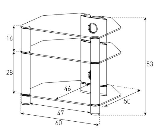 Надежная стойка под hi-fi компоненты из закаленного стекла с закругленными углами и полированной кромкой. В задней ножке расположен кабель-канал, который эффективно маскирует межкомпонентные провода и кабели.