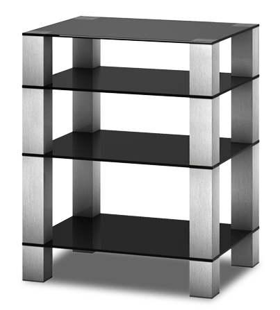 Надежная стойка под hi-fi компоненты из закаленного стекла с закругленными углами и полированной кромкой. Отделка шлифованный аллюминий, покрытый лаком - стальной цвет.