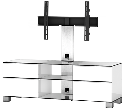 Надежная стойка под большие телевизоры с универсальным поворотным креплением из закаленного стекла с закругленными углами и полированной кромкой. Поворотное крепление подходит для всех видов плоских телевизоров (LCD, LED и плазма) и имеет возможность регулировки высоты. В задней ножке расположен кабель-канал для маскировки проводов и кабеле. Оснащена скрытой роликовой системой для плавного перемещения ТВ стойки вместе с телевизором и другой аппаратурой. Стойка предназначена для телевизоров с диагональю 32-75 дюймов (весом до 50 кг). Крепление поддерживает форматы 20x20, 30x30, 40x40 и 60х40. Возможно оснащение увеличенным крепление (80x45). Выдвижной ящик оснащен системой мягкого и бесшумного закрытия.