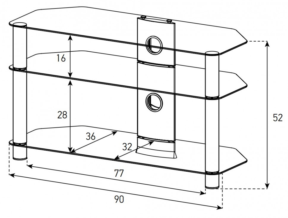 Надежная тумба под телевизор станет элегантным и незаменимым элементом любого интерьера. Изготовлена из закаленного стекла с полированной кромкой и высококачественного алюминия. Есть кабель-канал для скрытия проводов и скрытые колесики для перемещения ТВ тумбы. Подставка предназначена для телевизоров с диагональю 32-50 дюймов.