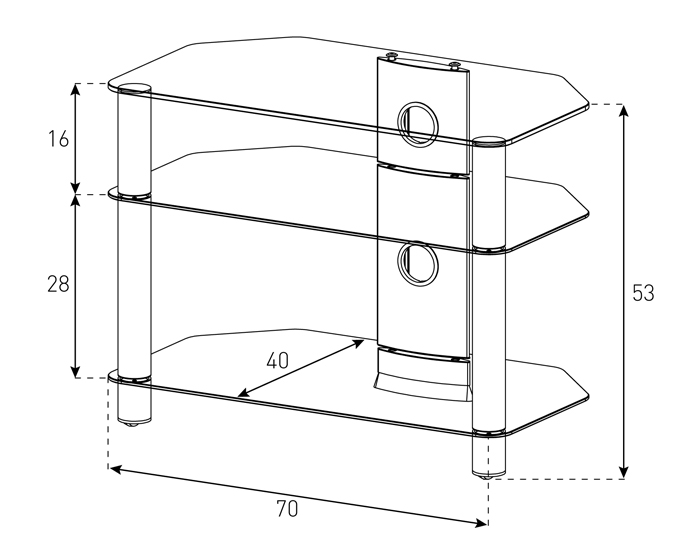Надежная тумба под телевизор станет элегантным и незаменимым элементом любого интерьера. Изготовлена из закаленного прозрачного стекла с полированной кромкой и высококачественного алюминия. Есть кабель-канал для скрытия проводов и скрытые колесики для перемещения ТВ тумбы. Подставка предназначена для телевизоров с диагональю 26-46 дюймов.