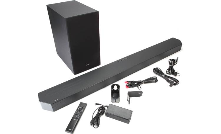 - звуковая панель- беспроводной сабвуфер- пульт ДУ- батарейки для пульта ДУ- кабель HDMI- адаптер питания- кабель питания (2 шт.)- набор для настенного крепежа- документация